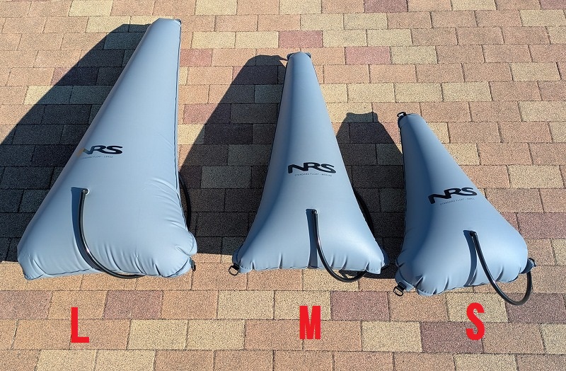 Sサイズは、シングル(1人乗り)およびタンデム(2人乗り)フォールディングカヤックのバウ側(前側)。Mサイズはシングルフォールディングカヤックのスターン側(後側)。Lサイズはタンデム(2人乗り)フォールディングカヤックのスターン側(後側)にそれぞれおすすめのサイズです。